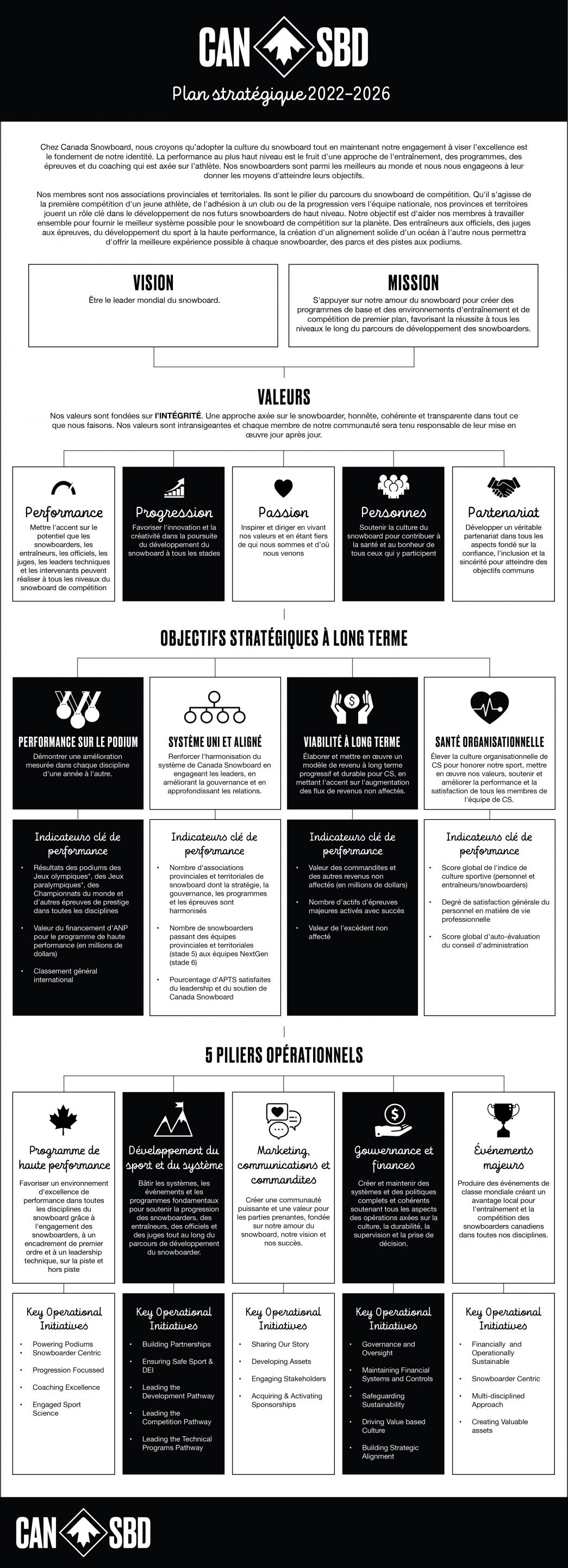 Mission: S'appuyer sur notre amour du snowboard pour creér des programes de base et des environnements d'entraînement et de compétition de premier plan, favorisant la réussite à tous les niveaux le lond du parcours de développement des snowboarders.