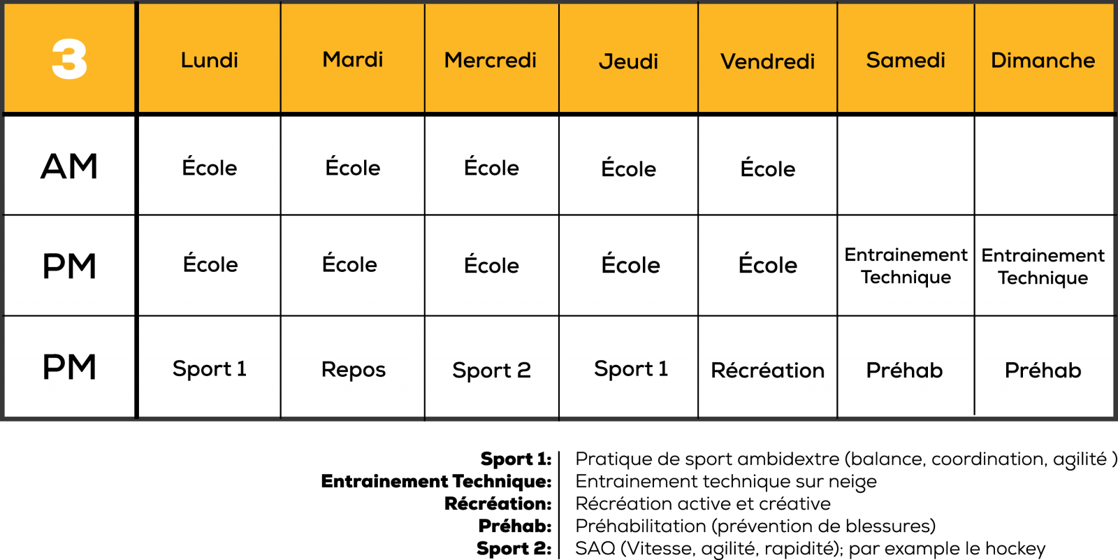 Voici un aperçu d'une semaine typique pour un athlète au Stade 3